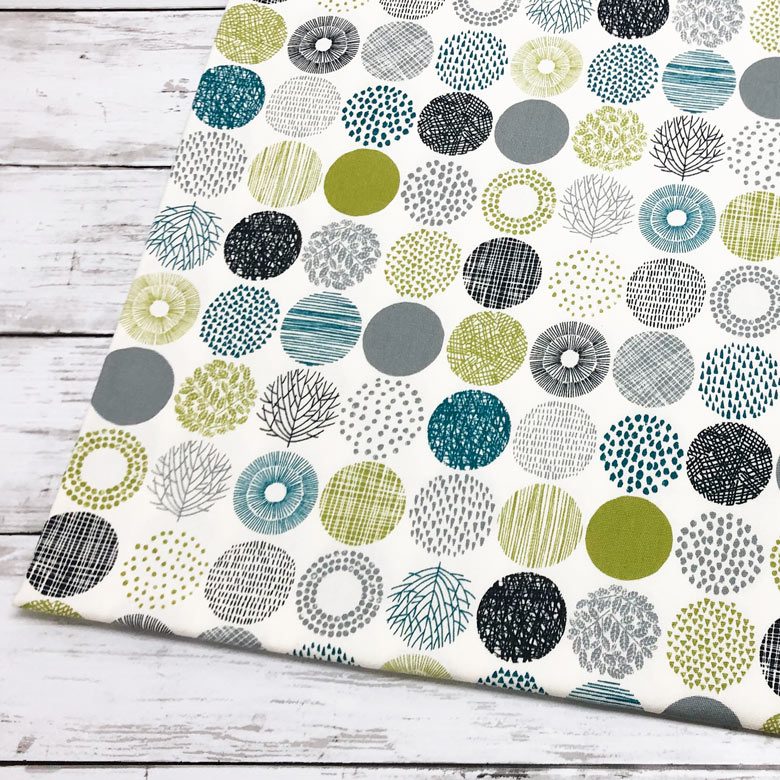 クーポン対象! 【10センチ単位】生地 布 小さなサークル柄 (柄の直径3.5cm)グリーン 綿オックス コットン100% 北欧風 手芸 手作り ハンドメイド 商用利用可ドットまる 木 ヌノズキ 布好き