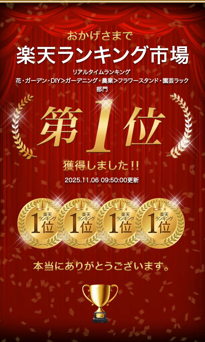 鉢転倒防止用の柵付き 棚の周りには鉢が転倒したり落下するのを防いでくれる柵付きです。