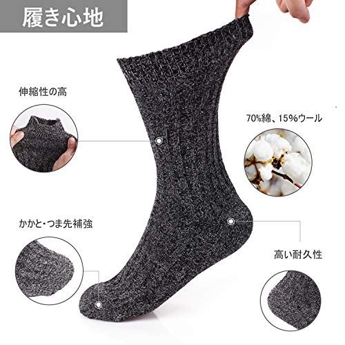 ・素材構成: 70% 綿, 15% ウール, 10% 合成繊維(エラスタン), 5% ポリエステル・素材構成: 70%綿、15%ウール、10 %エラスタン、ポリエステル5 %・サイズ:M-L 24-28cm 丈の長さ:25cm 正味重量:約50g/足・四季の男性用ウール靴下:日常用の紳士用ウール靴下5足。