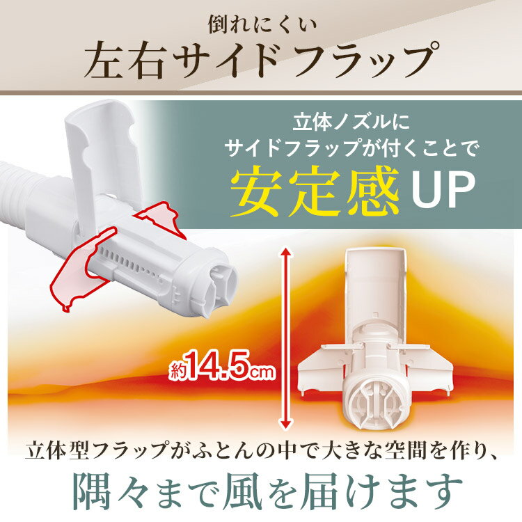 立体型フラップが布団の中で大きな空間を作り、隅々まで風を届けます。