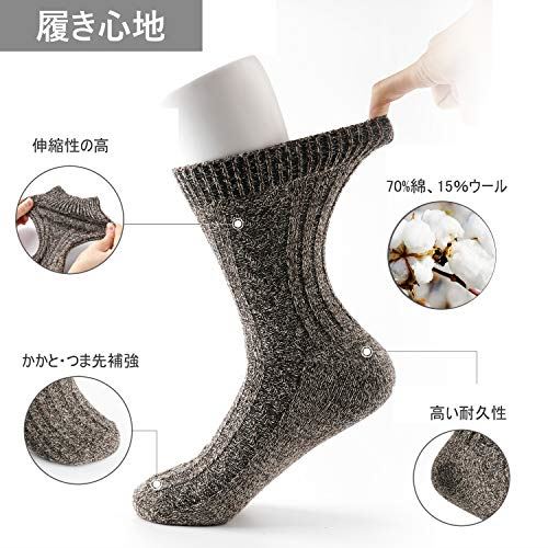 ・素材構成: 70% 綿, 15% ウール, 10% 合成繊維(エラスタン), 5% ポリエステル・素材構成: 70%綿、15%ウール、10 %エラスタン、ポリエステル5 %・サイズ:M-L 24-28cm 丈の長さ:25cm 正味重量:約50g/足・四季の男性用ウール靴下:日常用の紳士用ウール靴下5足。