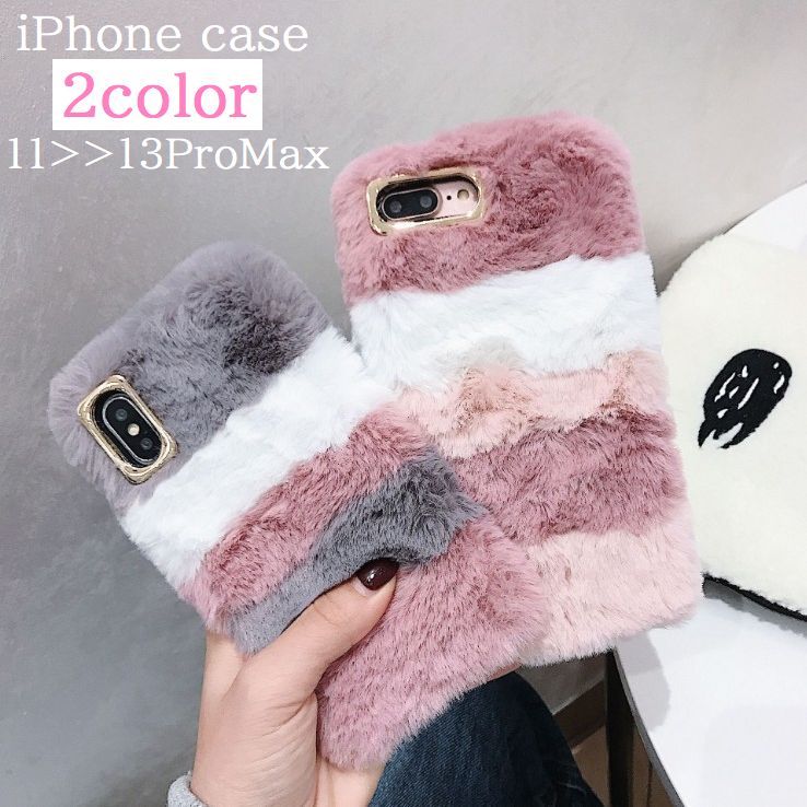 無地のiPhone 11ケースiPhone 11 Pro用背面カバー iPhone 11 Pro Max用スマホファーケース ふわふわ もこもこ MIXファー 暖かい 新年 クリスマス プレゼント ギフト【ra72509-2】