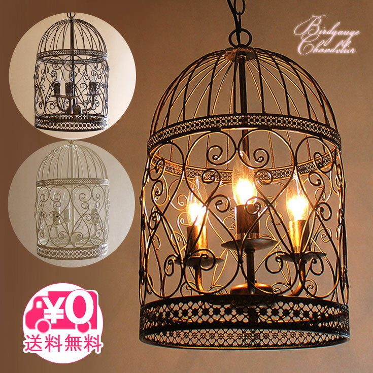 送料無料 秋月貿易 フレンチアイアン バードゲージ シャンデリア 67D3091112 照明 E12 天井照明 鳥かご アンティーク調