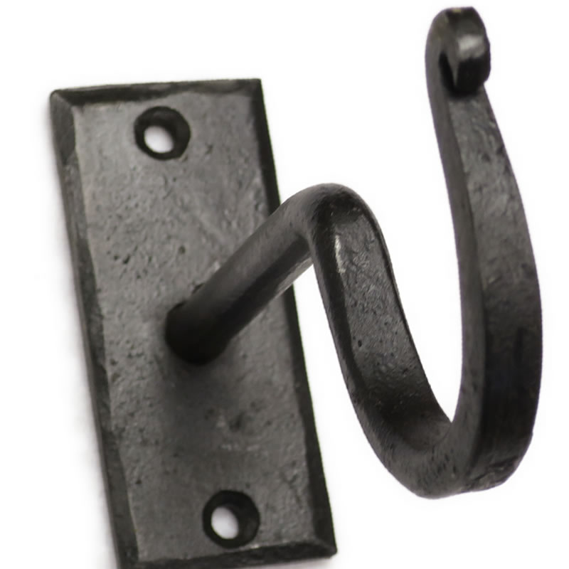 武骨で重厚なデザイン、しっかりとした作り、ハンマーワークの叩いた質感と人の手が創り出す鉄の表情が魅力的なロートアイアンの壁掛けフック。