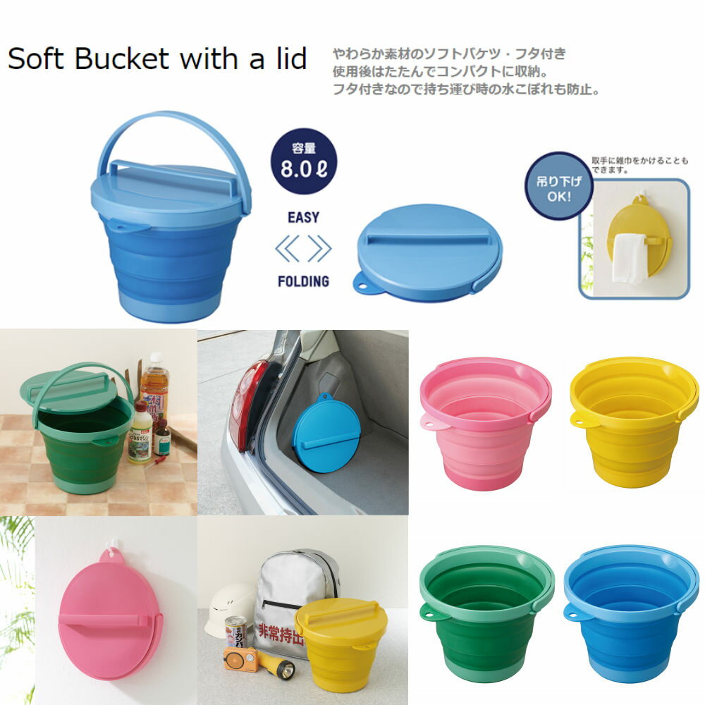 ソフトバケツ(フタ付き) 8L 折りたたみ|バケツ たらい 桶 バスケット コンパクト 折り畳み ふた付きバケツ フタ付きバケツ 掃除 清掃 コンパクト バケツ 収納 防災用 キャンプ アウトドア グランピング バーベキュー|有吉ゼミ ソフトバケツ