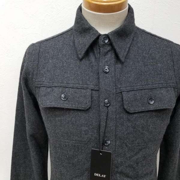 商品情報メーカーディレイバイウィンアンドサンズ / DELAYBYWIN&SONS形状シャツ、ブラウス / 長袖サイズ表記サイズ:2肩幅:42 cm、袖丈:63 cm、着丈:69 cm、身幅:47 cmカラー灰 / グレー柄 / パターン無地素材画像参照商品状態未使用に近い状態で使用感の少ないきれいなお品物です。