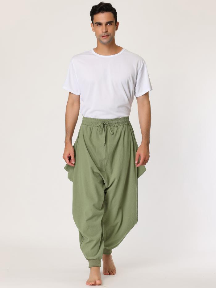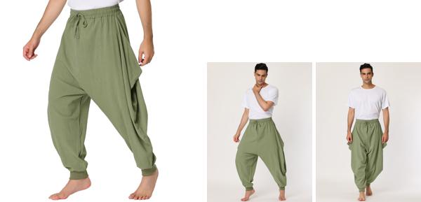 【属性2】サイドポケット、ウエストゴム、テーパータイプ、ハレムパンツ、ドロップクロッチ【属性3】パンツは春秋用です。
